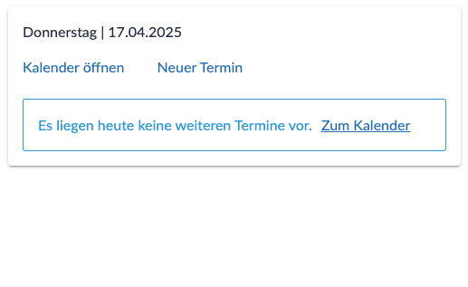 - Sind keine weitere Termine an dem Tag vorgesehen, so zeigt Ihnen die Karte an, dass heute keine weiteren Termine anstehen.