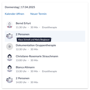- Gruppentermine erkenne Sie am Gruppenavatar und ein Tooltip stellt Ihnen Informationen zu den Teilnehmern bereit