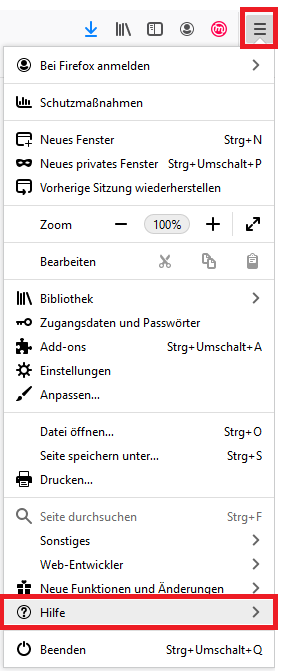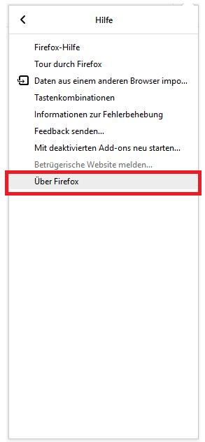 Über die Hilfe gelangen Sie zum Punkt "Über Firefox", welches Sie ebenfalls bitte aktivieren.
