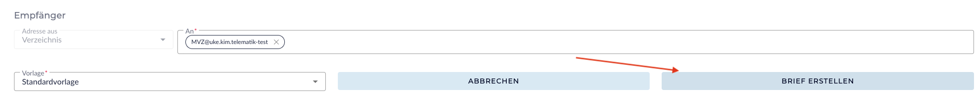 Mit Klick auf BRIEF ERSTELLEN werden die Empfängerdaten in Brief übernommen und das Eingabefeld wird aktiv.