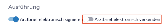 Ist die Option „Arztbrief elektronisch versenden“ deaktiviert, können Sie einen Brief im Patientenkontext erfassen, ohne dass ein elektronischer Versand (z. B. via KIM) angestoßen wird.
