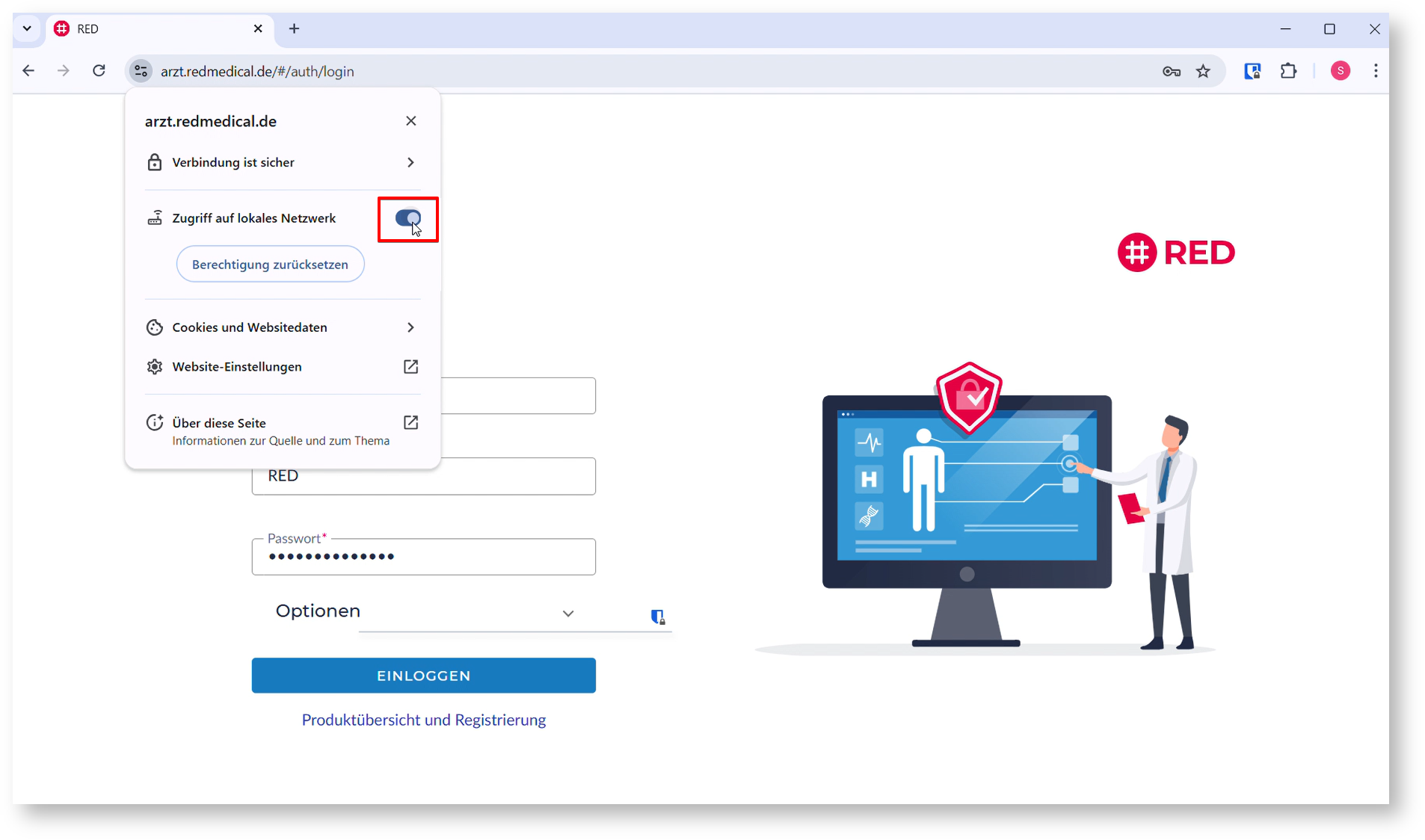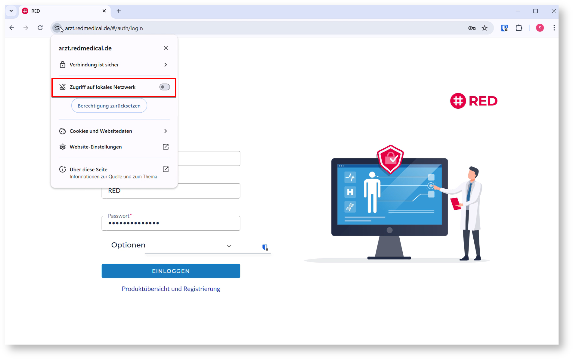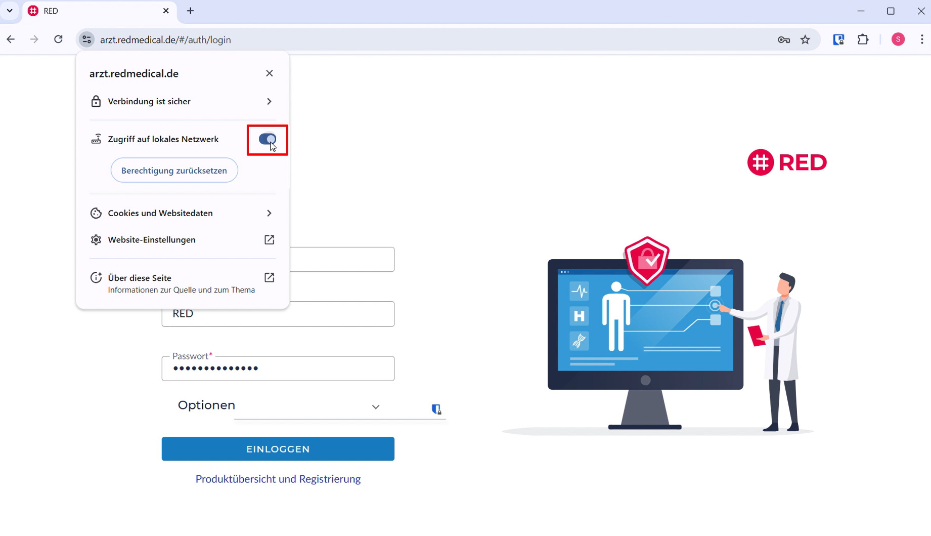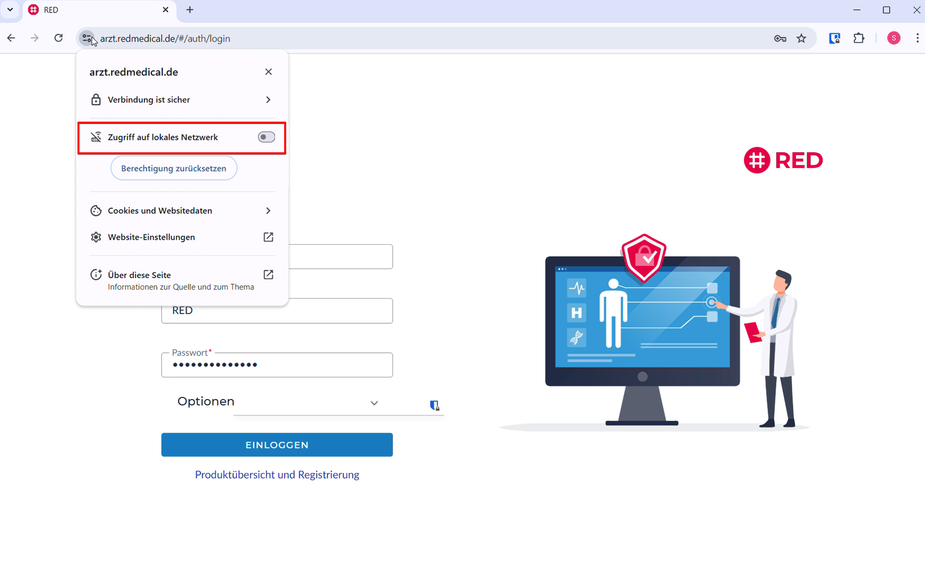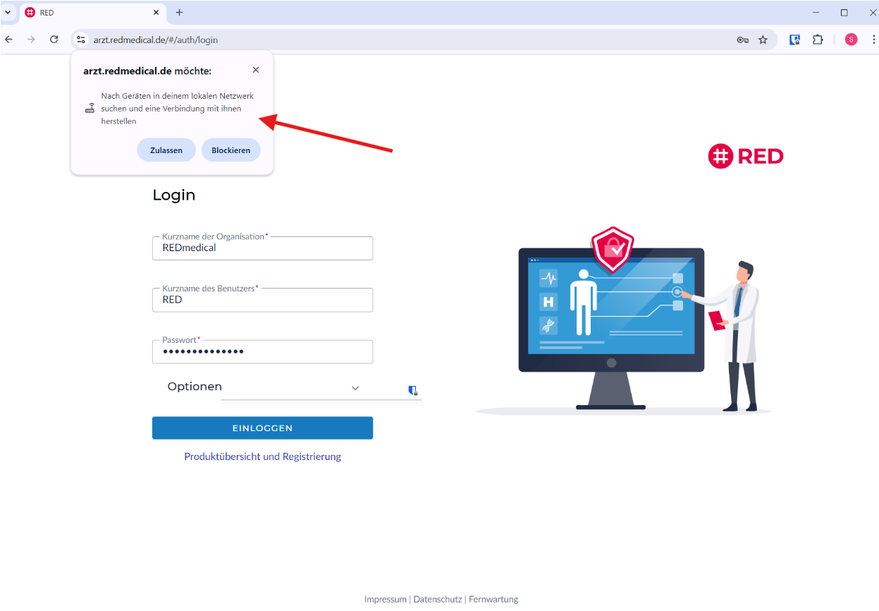 Um sofort wieder arbeiten zu können, müssen Sie Ihrem Browser einmalig die Erlaubnis erteilen, auf Ihr lokales Netzwerk zuzugreifen.