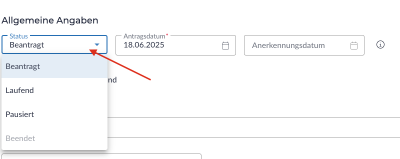 - Beantragt: Antragsformulare wurde ausgefüllt und die Rückmeldung ist noch ausstehend.