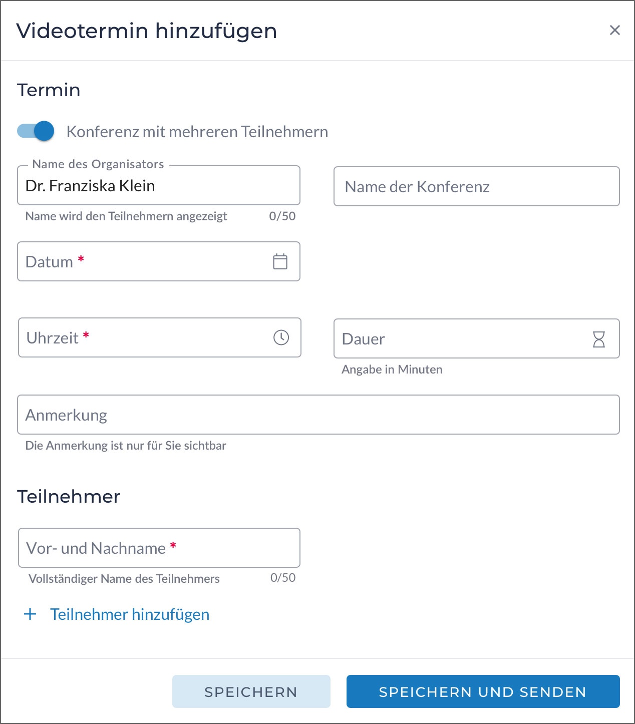In der Maske Videosprechstunde hinzufügen erfassen Sie den neuen Termin