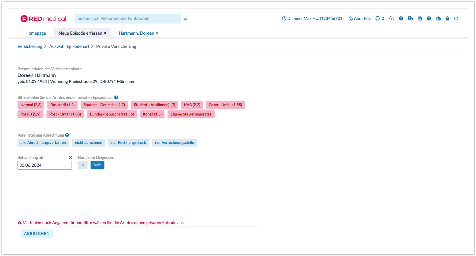 RED classic - PuE - 0103 Belegärztliche Behandlung