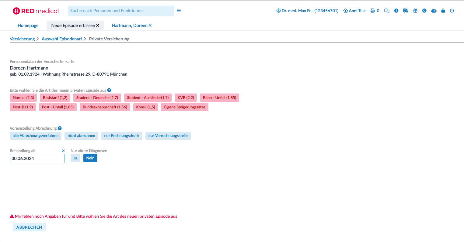 RED classic - PuE - 0103 Belegärztliche Behandlung