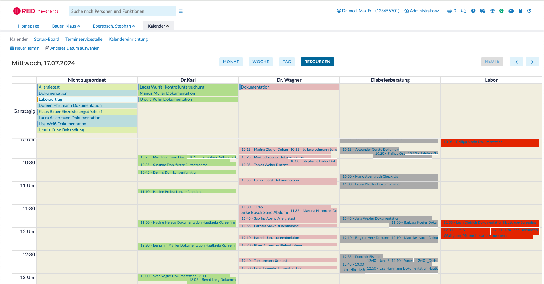 Der integrierte Kalender ermöglicht Ihnen eine optimale Steuerung der Abläufe in der Praxis. Aufgaben können mit oder ohne Zeit-, Ressourcen- und Patientenbezug definiert werden. Der Kalender ermöglicht verschiedene Sichten auf die anstehenden Aufgaben. Das Status-Board ergänzt die Kalendersicht um einen Orts- oder Ablaufbezug.