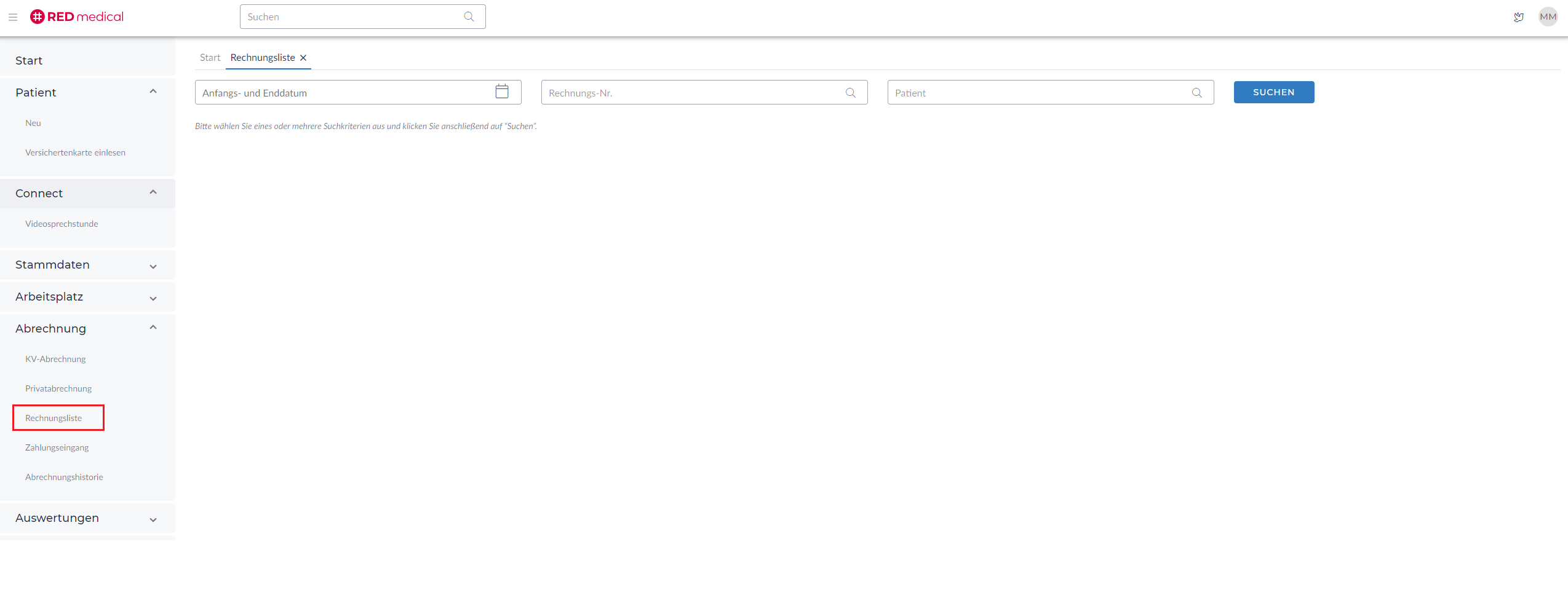 - alle Rechnungen (ohne Zeitraum, Rechnungs-Nr. und Patientenbezug)
