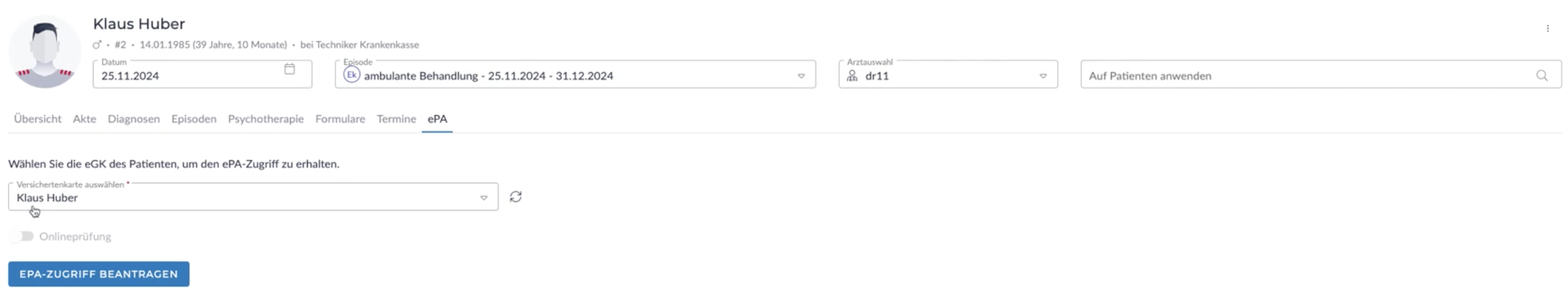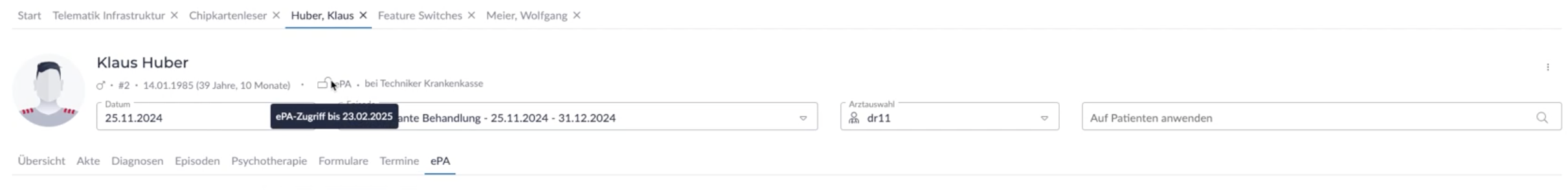 - Öffnen Sie im Patient den Reiter ePA