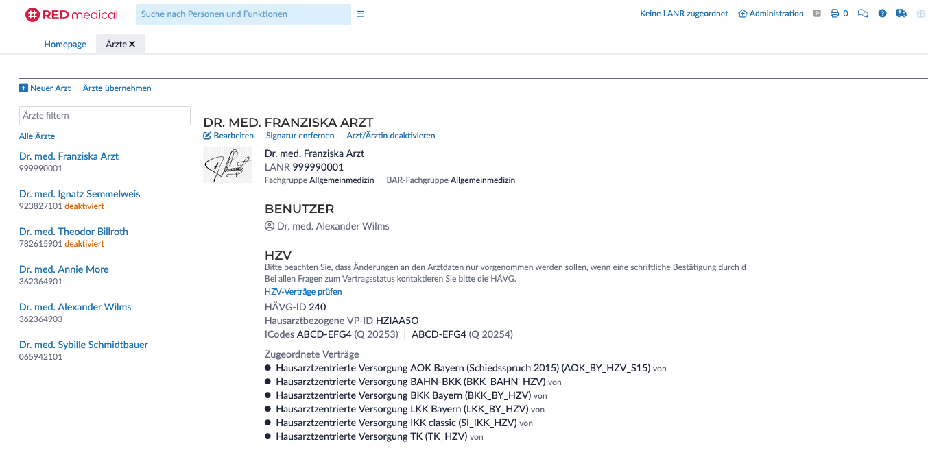 Für jeden Arzt werden die HZV-Daten seiner Vertragsteilnahme verwaltet, darunter